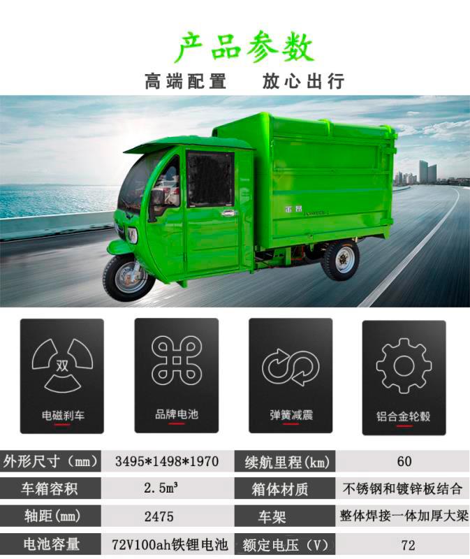 4、采用全封闭箱体结构,箱体底部采用不锈钢材料,耐腐蚀;车箱底部设计有污水箱,可防止垃圾及污水二次抛洒。